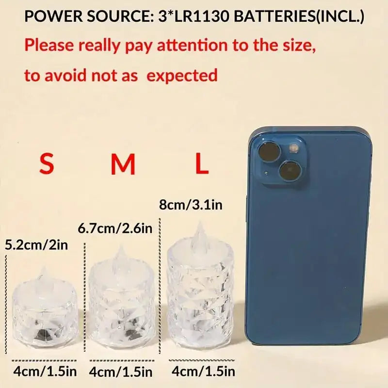With an elegant crystal-like design, this candle enhances any decor. Its gentle flicker provides a soothing glow, ideal for cozy evenings or romantic dinners, adding style and comfort effortlessly.