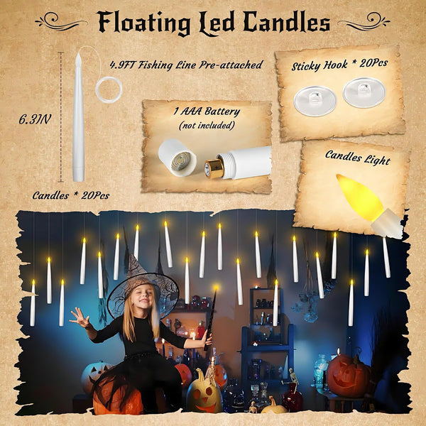 The candles use a wand and invisible string to create a floating illusion, enhancing your Halloween decor effortlessly.